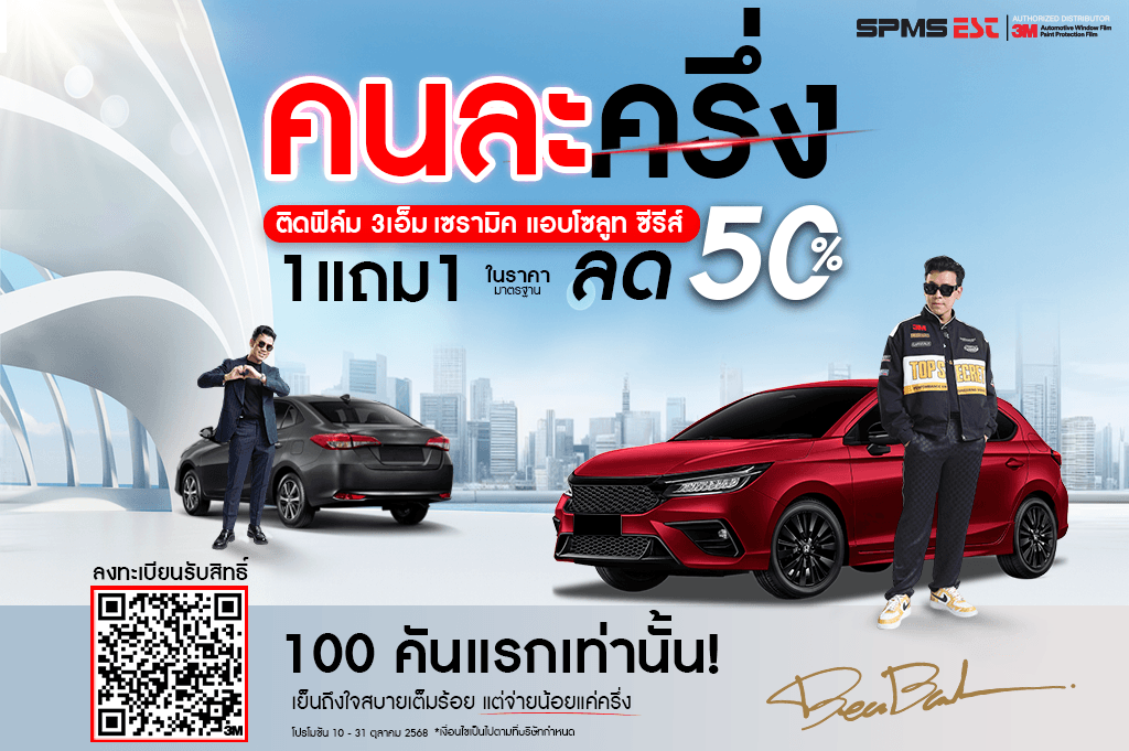 (ปิดรับสิทธิ์โปรโมชั่นนี้)3M จัดโปร คนละครึ่ง เปลี่ยนรถร้อนให้เย็นสบาย แต่จ่ายคนละครึ่ง 1 แถม 1 ในราคาลด 50%