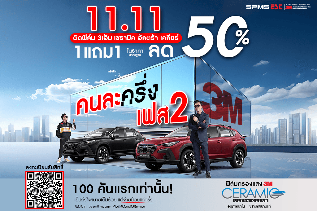ดีลเดือดสุด 3M Ceramic Ultra Clear ฟิล์มเซรามิคตัวฮิตที่ทุกคนบอกว่าชัดจริง คุ้มจริง 11.11 นี้ไม่ต้องรอใครอนุมัติ! 3M จัดโปร “คนละครึ่งเฟส2” ที่พิเศษกว่าใคร ติดฟิล์มเซรามิค อัลตร้าเคลียร์ 1 แถม 1 ในราคาลด 50% กติกา รายการส่งเสริมการขายนี้ ไม่สามารถใช้ร่วมกับรายการส่งเสริมการขายอื่นๆได้และไม่สามารถโอนสิทธิ์ให้ผู้อื่น หรือแลกเปลี่ยนเป็นรางวัลอื่นหรือทอนเป็นเงินสดได้ ราคาติดตั้งฟิล์ม3M Ceramic Ultra Clear (ราคาพิเศษนี้ เฉพาะช่วงระยะเวลากิจกรรมเท่านั้น) ร้านค้าที่ร่วมรายการ ทิพย์ ออโต้ เทคนิค-พระราม2-กาญจนาฯบางแค กรุงเทพ เดชาประดับยนต์-สุขสวัสดิ์ กรุงเทพ เอ็นทีซี ออโต้ วินเนอร์-บางขุนเทียน กรุงเทพ ซีเอ็มออโต้ กรุงเทพ แสงรุ่งโรจน์ฟิล์ม-ตากสิน กรุงเทพ ธวัชชัยแอร์แอนด์ซาวด์-สิรินธร กรุงเทพ เพอร์เฟคออโต้กลาส-หนองแขม กรุงเทพ Papana Studio Car Detailing-พระราม 3 กรุงเทพ […]